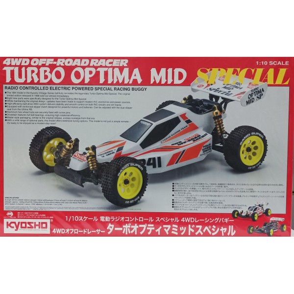 - The 18th model in the Kyosho Vintage Series faithfully recreates the legendary Turbo Optima Mid Special. The original limited edition released in 1988 sold out almost immediately.